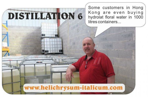 The problem with Hydrolat is transport . In France with supply the trade with Barril of 200 litres, and abroad in containers of 1000 litres. Air transport is convenient because effective in a very short time ( days ) but extremely expensive, far more than the content itself is some cases . Transport by ship can be more cost effective, but having to transport below the deck under refrigeration bump up the price. However it is a must as up to 1 month depending destination at high ambiant temperature is an issue for conservation. We do not add alcohol of any preservative, only UV light for the containers that give you 3 years of stability.